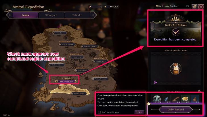 Когда вы окажетесь в Доме Amitoi, снова взаимодействуйте с Картой Экспедиций Amitoi. Нажмите Получить Награду, чтобы получить свои материалы, освобождая Карту для другой Экспедиции.
